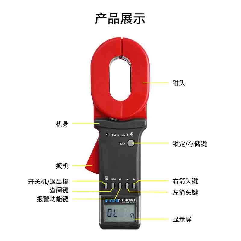 | ETCR2000+鉗形接地電阻儀 | 65mm×32mm | 0.010Ω~1200Ω | -- | 有 | 500組 | 有 | |