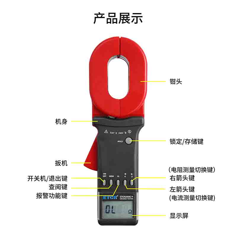 ETCR2000C+鉗形接地電阻儀又稱鉗形接地電阻表、單鉗接地電阻測試儀、環(huán)路電阻測試儀、防雷接地電阻表、防雷地阻儀,用于接地電阻、回路電阻測量、接地電流測量、接地故障判斷。在測量有回路的接地系統(tǒng)時(shí),不需斷開接地引下線,不需輔助接地極,安全快速、使用簡便。鉗形接地電阻儀廣泛應(yīng)用于電力、電信、氣象、油田、建筑及工業(yè)電氣設(shè)備等的接地電阻測量、回路電阻測量。長鉗口特別適宜于扁鋼接地的場所。