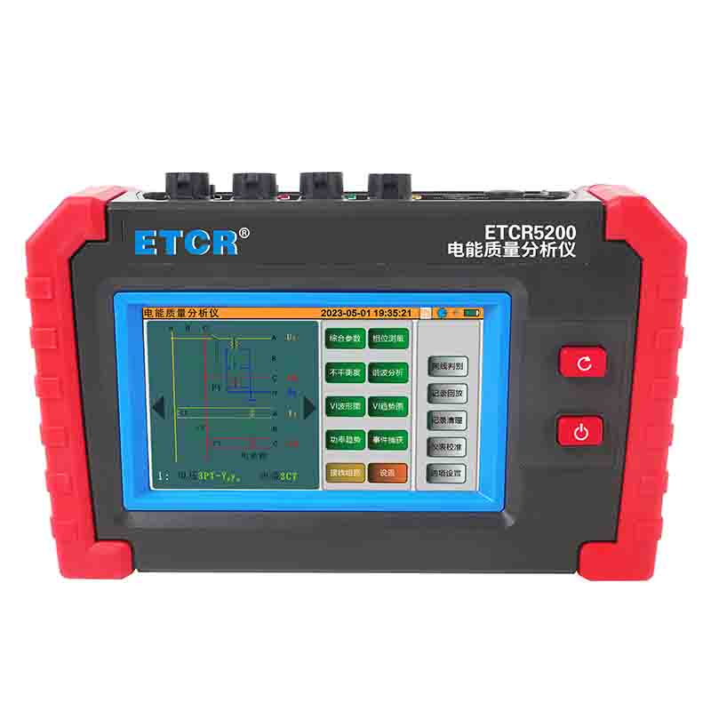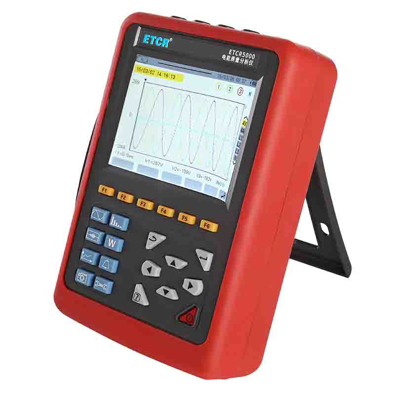 ETCR5000電能質(zhì)量分析儀又稱電力質(zhì)量分析儀、電力參數(shù)測試儀、諧波分析儀,是一款專為現(xiàn)場測試三相電能參數(shù)的多功能、智能化綜合型測試儀器。可同時測量4路電流(ABC三相及中性線電流),4路電壓(ABC三相電壓及中性線對地電壓)、電流電壓的峰值、一段時間內(nèi)的最大最小值、三相不平衡度、短時電壓閃變、變壓器K因數(shù)、有功功率、無功功率、視在功率、功率因數(shù)、位移功率因數(shù)、有功電能、無功電能、視在電能、諧波比、總諧波失真度等;顯示電流電壓的實時波形、相量圖、諧波比柱形圖;動態(tài)捕捉電壓電流瞬時變化,監(jiān)測啟動電流,監(jiān)測各電力參數(shù)并生成告警列表,長時間記錄測試數(shù)據(jù)并生成趨勢曲線圖等功能。適用于電力、石化、冶金、鐵路、工礦企業(yè)、科研院校、計量部門等。