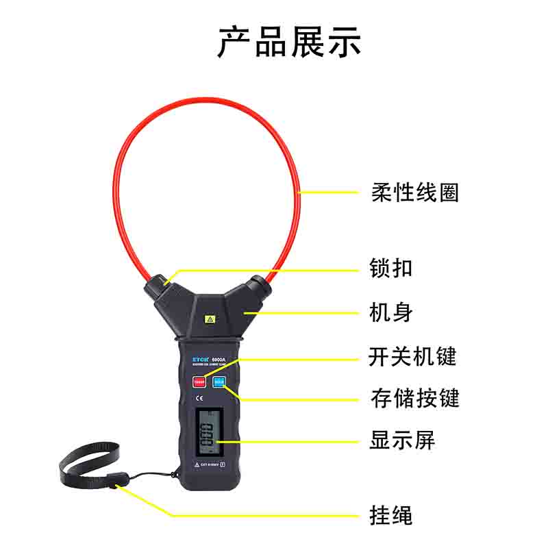ETCR6900A柔性電流鉗表還具有峰值保持、數(shù)據(jù)保持、數(shù)據(jù)存儲等功能,是電工安全檢測的必備工具。