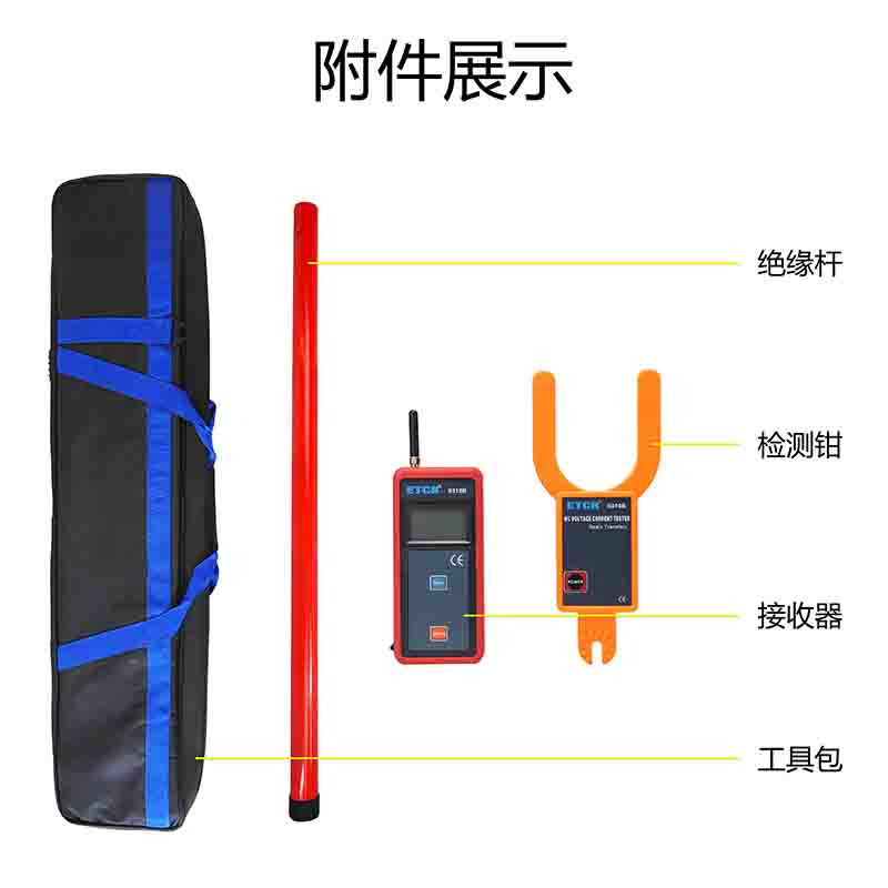 ETCR9310B大口徑叉形高低壓叉形電流表由叉形鉗頭、接收器、伸縮絕緣桿組成。在110kV以下測試需帶絕緣桿操作(可定制500kV以下測試),在600V以下可不使用絕緣桿。儀表還具有數(shù)據(jù)保持、數(shù)據(jù)存儲等功能。