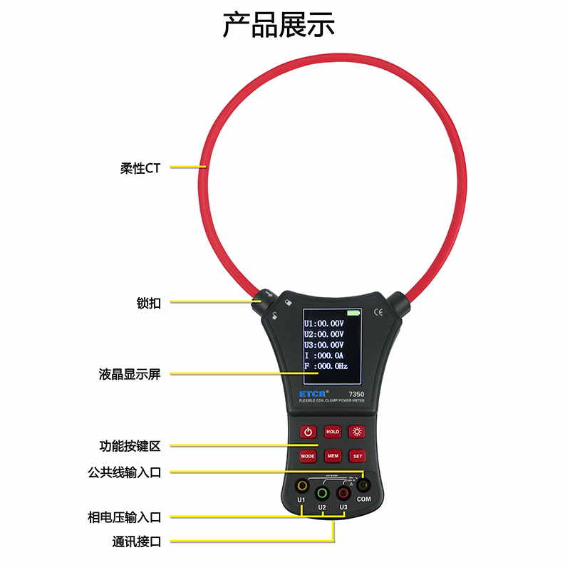 | ETCR7350柔性鉗形功率表 | AC 0.0A~6000A | 0.00V~600V | 0.0°~360° | Φ200mm | 200組 |