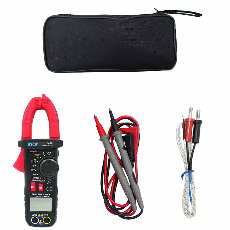 | ETCR6420鉗形萬用表 | Ф27mm | DC 0mV~600V AC 0V~600V | 0A~600A | 0Ω~40MΩ | 0nF~10mF | 100Hz~40MHz | -50°C~1000°C |
