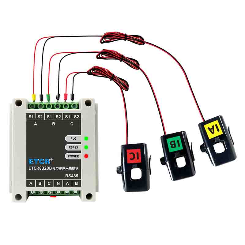 ETCR8320系列電力參數(shù)采集模塊用于現(xiàn)場(chǎng)在線實(shí)時(shí)監(jiān)測(cè)、記錄3路交流電流、交流電壓、無(wú)功功率、有功功率、視在功率、功率因數(shù)、畸變率、諧波、不平衡度、潮流方向等電力參數(shù)。采集模塊由采集器、開(kāi)口式互感器等組成。采集模塊可接入3路電流互感器、3路電壓。采集器具有RS485通訊功能,提供MODBUS通訊協(xié)議,便于用戶二次開(kāi)發(fā),B型具有PLC通訊?;ジ衅饔袌A形、扁口、防水型等多種款式可供用戶選擇,開(kāi)口式結(jié)構(gòu)CT現(xiàn)場(chǎng)安裝時(shí)無(wú)需停電無(wú)需斷開(kāi)電纜線,安裝方便安全。采集模塊體積小巧,特別適合安裝在JP柜、箱變電房等空間狹小的場(chǎng)所使用。采集模塊有2種安裝方式:螺釘安裝或?qū)к壈惭b。廣泛應(yīng)用在電氣裝置的交流電流、接地環(huán)流、交流電壓的在線監(jiān)測(cè),為用電檢查人員提供安全、準(zhǔn)確、便捷的電力參數(shù)。