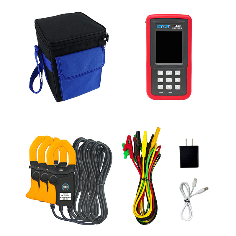 隨機(jī)附件 | 主機(jī)1件;互感器1個(gè)(ETCR8400)/3個(gè)(ETCR8430);電壓輸入線2條(ETCR8400)/4條(ETCR8430);數(shù)據(jù)線1個(gè);電源適配器1個(gè);工具包1件 |
