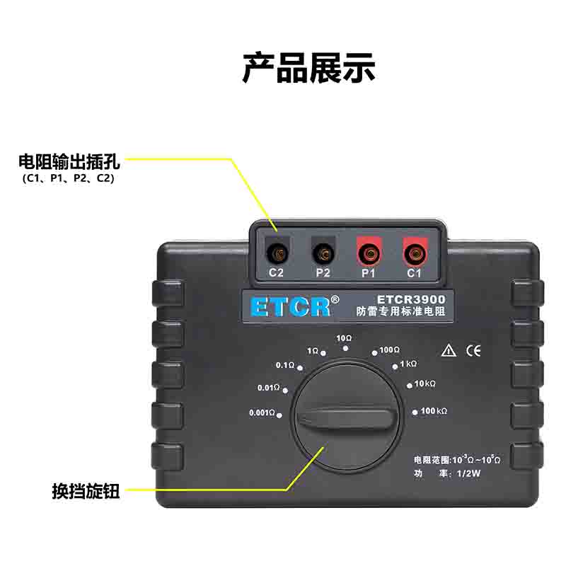ETCR3900防雷專用標(biāo)準(zhǔn)電阻由9個1/2W高精度線繞電阻組成,校準(zhǔn)電阻時直接換擋測試,無需更換測試線,性能穩(wěn)定結(jié)構(gòu)堅(jiān)固,校準(zhǔn)測試特別方便。采用的高精度線繞電阻最高精度達(dá)0.05%,其阻值包括1mΩ、10mΩ、100mΩ、1Ω、10Ω、100Ω、1kΩ、100kΩ完全滿足國家氣象局38號令【雷電防護(hù)裝置檢測資質(zhì)管理辦法】中規(guī)定的10-3~105Ω范圍。本標(biāo)準(zhǔn)電阻主要用于接地電阻測試儀、等電位測試儀等儀器的校準(zhǔn)。廣泛應(yīng)用于建筑質(zhì)檢站、監(jiān)理公司、建筑施工單位、防雷公司、電力部門等。