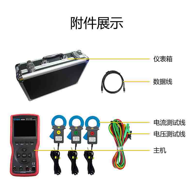 | ETCR4320大口徑三相數(shù)字相位伏安表 | Φ40mm | 0~360° | 0.00V~600V | 0mA~600A | 0.0W~360kW | -- | |