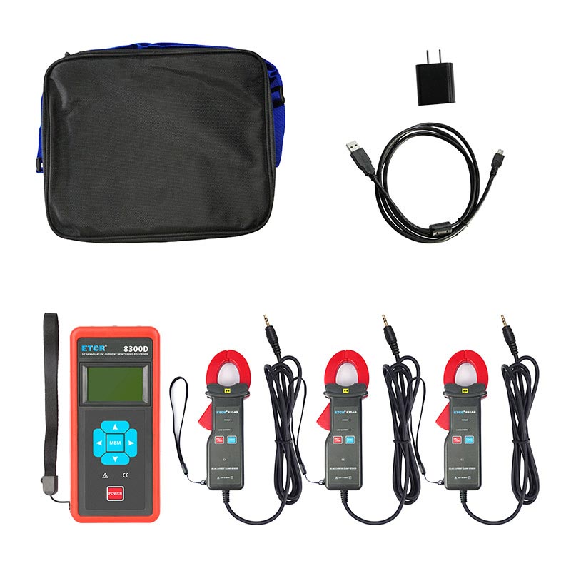 | ETCR8300三路鉗形漏電流記錄儀 | Φ30mm | AC 0.00mA~20A | 7天 | 1秒-99分鐘 | 20萬組 | 鋰電池 | 有 |
