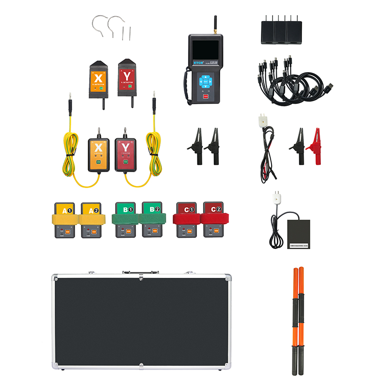 ETCR1560多功能無線高壓核相儀由主機(jī)、高壓線路探測器、中置柜探測器、環(huán)網(wǎng)柜探測器、伸縮絕緣桿、數(shù)據(jù)上傳軟件、USB通訊線等組成,主機(jī)采用3.5寸真彩液晶屏,可以同屏顯示相位、頻率、相序及核相結(jié)果,向量圖指示、相位指示清晰直觀;具有“X信號正常、Y信號正常、同相、異相”等語音提示功能,還有驗(yàn)電及線路電壓等級顯示功能。存儲功能,可存儲數(shù)據(jù)200組,USB通信接口,存儲數(shù)據(jù)上傳電腦可進(jìn)行歷史數(shù)據(jù)讀取、查閱、保存、打印等。