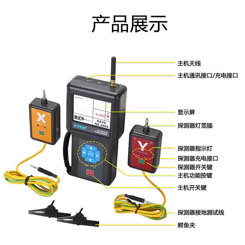 電源 | 主 機:3.7V,2600mAh充電鋰電池 探測器: 3.7V,1000mAh充電鋰電池 |