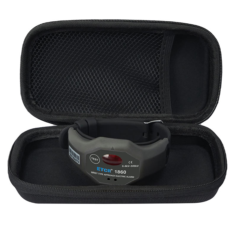 ETCR1860手腕式近電報警器又稱穿戴式近電報警器,為近電作業(yè)人員提供一款安全、實用、便捷的新型高壓報警裝置。帶電作業(yè)時,操作人員與帶電體的安全距離不能低于相關(guān)工作規(guī)程的要求。作業(yè)人員佩戴本報警器后,在接近高壓帶電體一定距離時,根據(jù)電壓等級相應(yīng)的安全距離,報警器發(fā)出聲光報警,提醒電氣工作人員注意安全,避免發(fā)生高壓觸電事故。